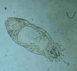 A Skin Fluke (Gyrodactylus)- a common microscopic Koi parasite